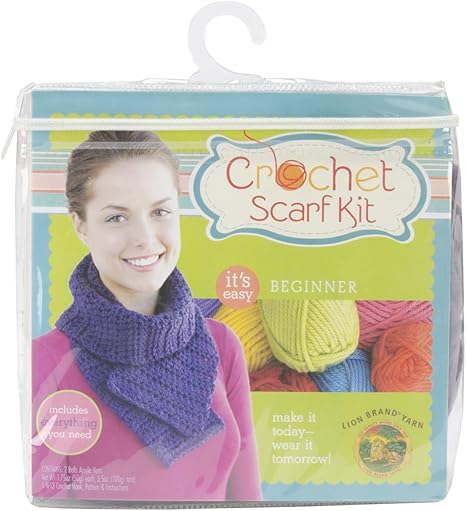 Amazon Com Lion Brand Yarn 600 886 Beginner Crochet Scarf Kit Purple