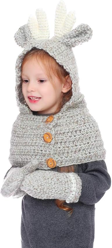 Senserise Winter Kids Warm Animal Hats Knitted Hood Scarf Beanies Ancon Kart