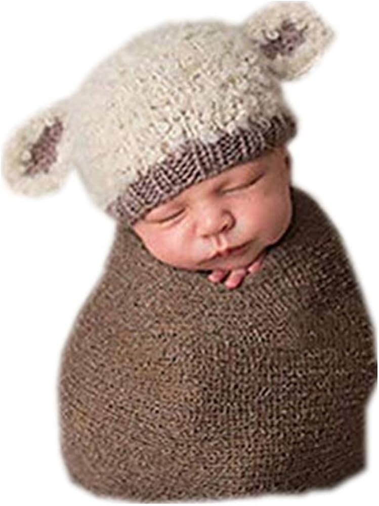 Amazon Com Newborn Baby Boys Girls Photography Props Outfits Lamb Hat Style With Long Ripple Wrap Stretch Set Coffee Clothing