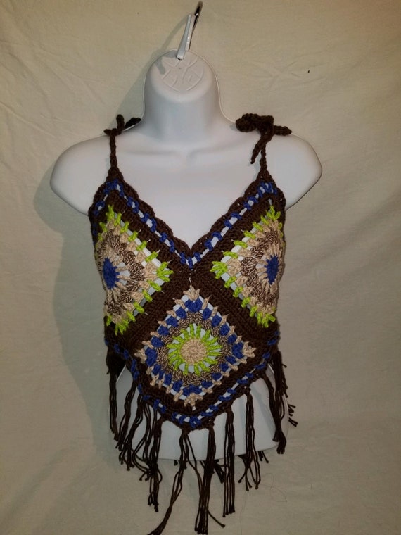 Brown Boho Festival Tank Top Green Cruise Cover Up Hippie Etsy