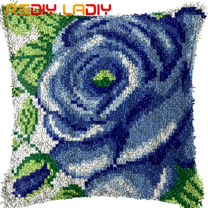 Latch Hook Kit Make Your Own Cushion Blue Flowers Acrylic Yarn Crochet Pillow Case Set Printed Canvas Latch Hook Cushion Cover Latch Hook Aliexpress