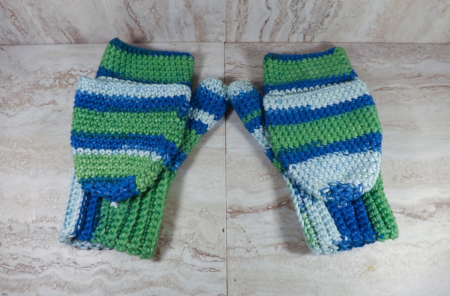 Amazon Com Blue And Green Fold Down Mitts Crochet Flip Top Mittens Convertible Gloves Texting Mitts Convertible Mittens Texting Gloves Handmade