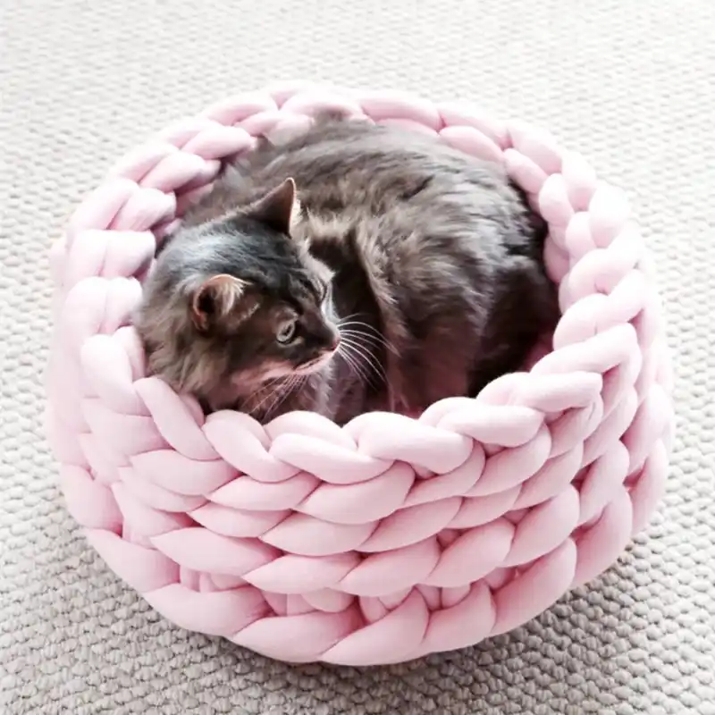 30 35 40cm Diy Hand Woven Coarse Wool Pet Nest Cat Bed Winter Cozy Warm Dog House Crochet Chunky Knitted Kennel Mat Pet Supplies Aliexpress