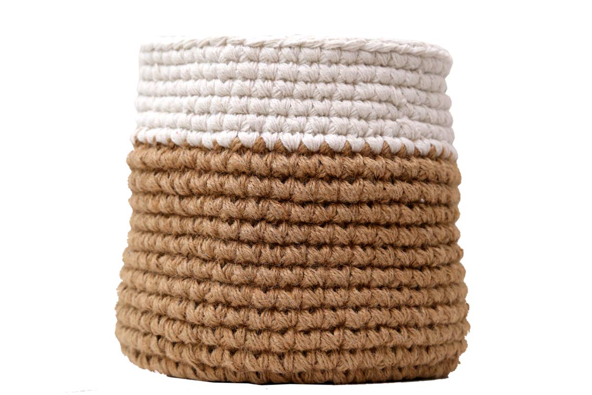 Home Decorz Store Modern Jute Crochet Indoor Planter Cum Basket Beautiful Dual Tone Jute Storage Basket Large Height 25cm 10 Inch Width 25 Cm 10 Inch Amazon In Garden Outdoors
