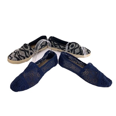 Toms Lot Of 2 Classic Crochet Lace Women S Size 7 Slip On Shoe Blue White Black Ebay