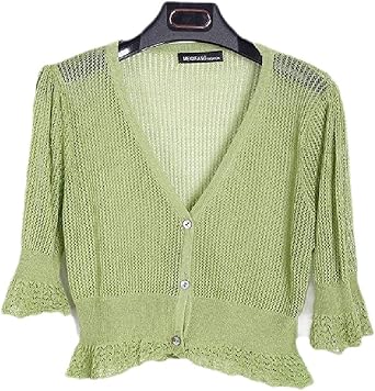 Cyj Shiba Women S Cardigan Crop Lace 3 4 Sleeve Sheer Bolero Shrugs Crochet Jacket At Amazon Women S Clothing Store
