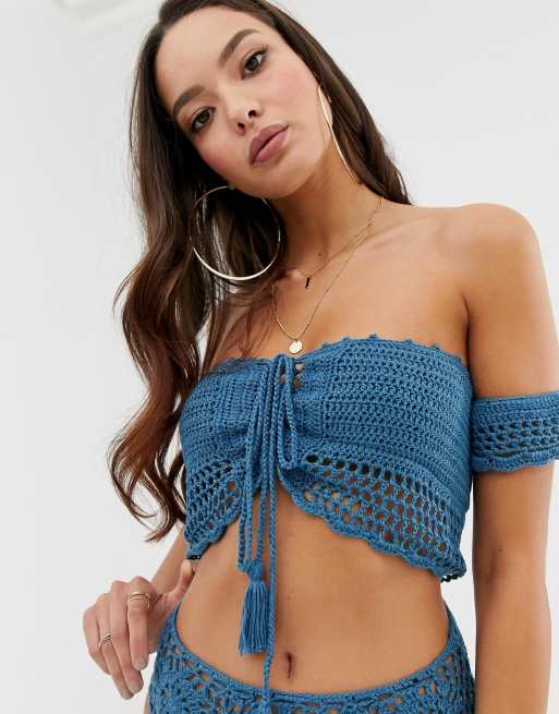 Missguided Crochet Bandeau Bikini Top In Blue Asos