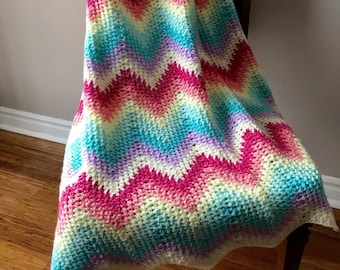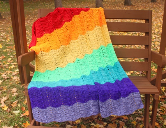 Crochet Baby Blanket Pattern Rainbow Ripples And Popcorns Easy Etsy