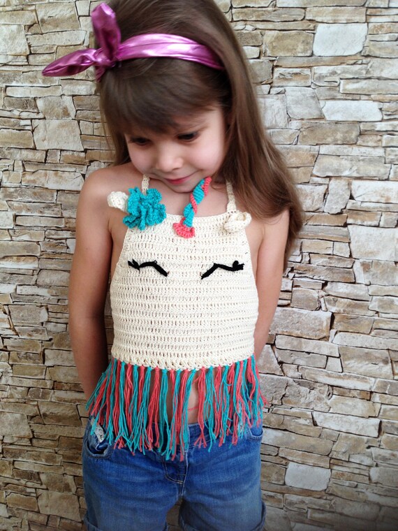 Crochet Toddler Baby Unicorn Crop Top Animals Fringe Halter Etsy