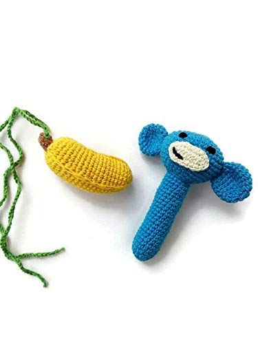 Amazon Com Crochet Monkey Animal Rattle Banana Stroller Toy Waldorf Baby Gym Toy Natural Teether Hanging Crib Handmade Mobile Funny Baby Gift Handmade
