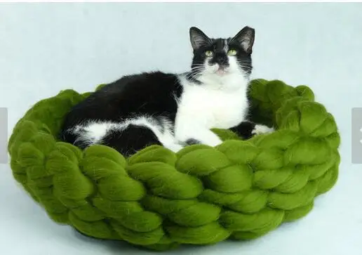Amazon Com Chunky Knit Cat Bed Chunky Cat Cave Chunky Crochet Cat Bedding Pet Bedding Handmade Chenille Yarn Pet Bed Diameter 20 Home Kitchen