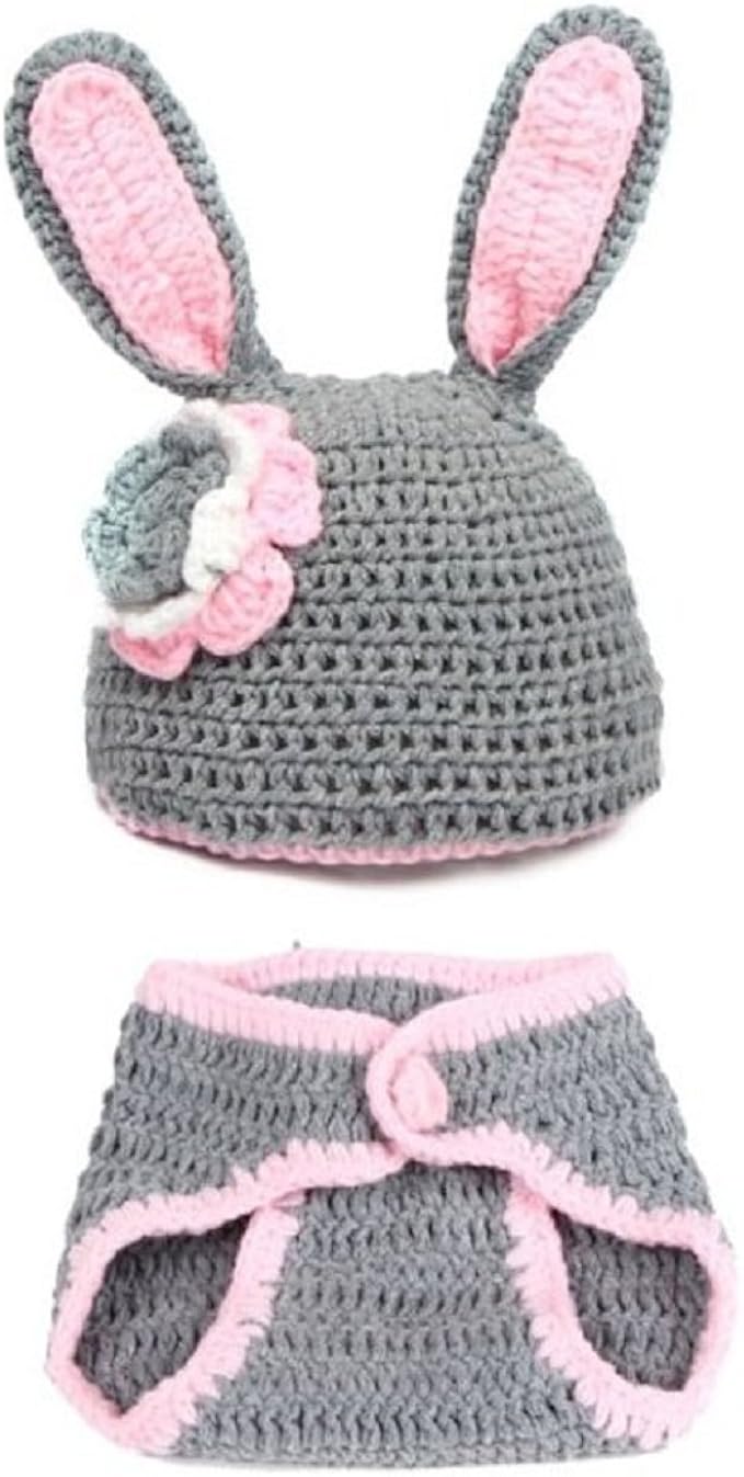 Amazon Com Rush Dance Photography Prop Gray Easter Bunny Rabbit Crochet Costume Hat Diaper Clothing