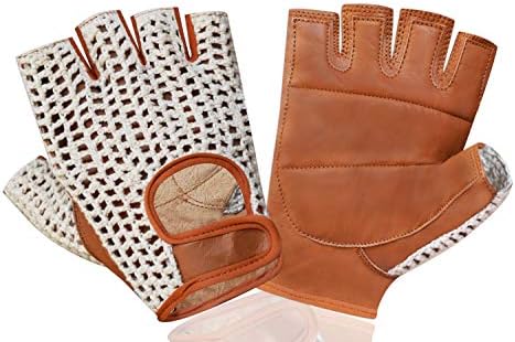 Amazon Com Prime Sports Retro Leather Crochet Cycling Gloves Classic Tan Sports Outdoors