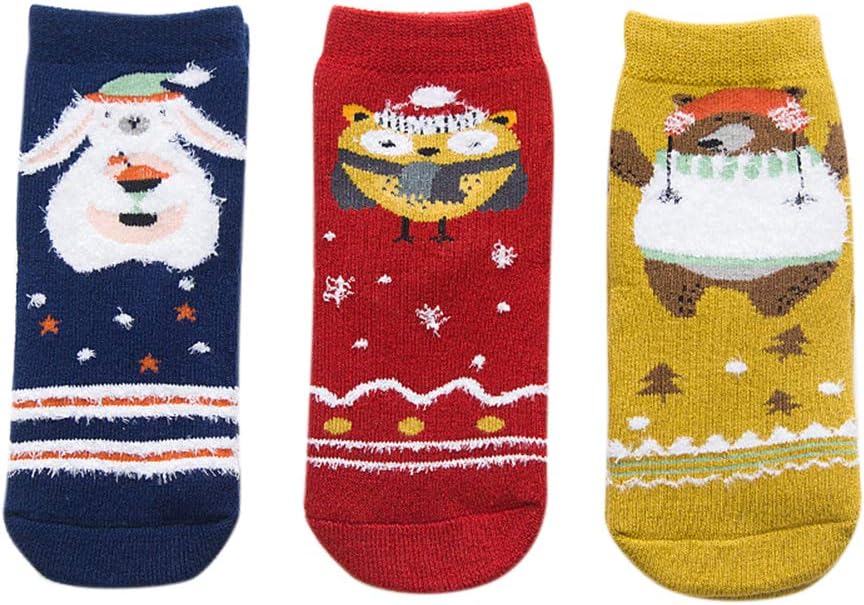 Baby 3 Pairs M Elegantstunning 3pairs Set Children Thickened Long Tube Socks Cartoon Christmas Style Socks 1 3 Years Old Socks
