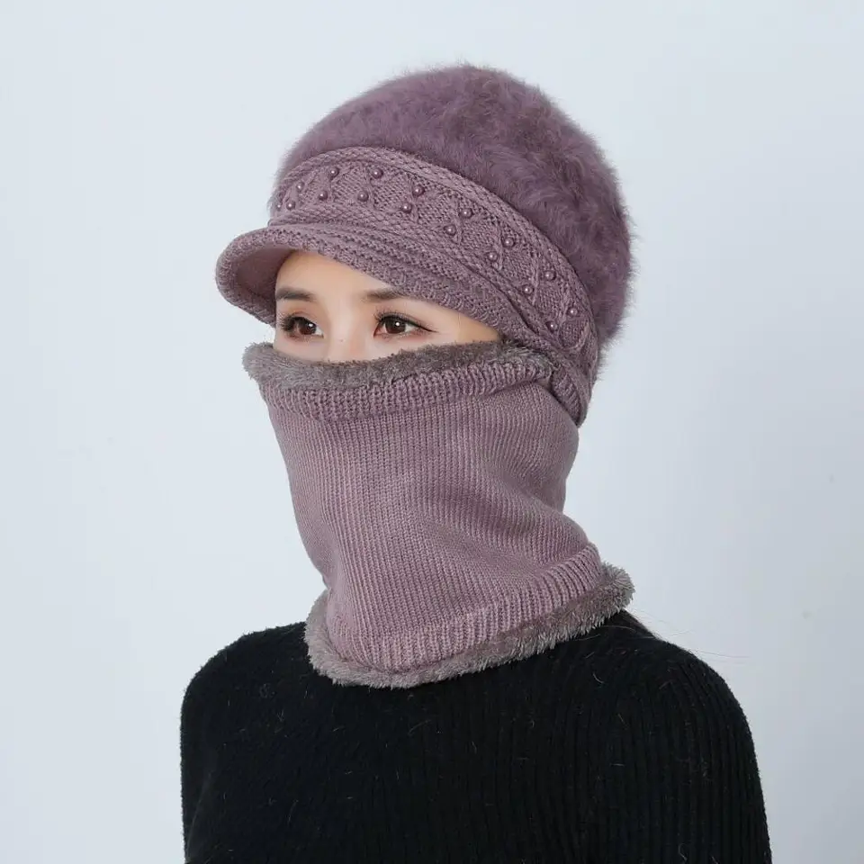 Fashion Winter Warm Female Hats For Women Wool Scarf Caps Balaclava Mask Gorras Bonnet Thick Pearl Rabbit Hair Knitted Hats Women S Skullies Beanies Aliexpress