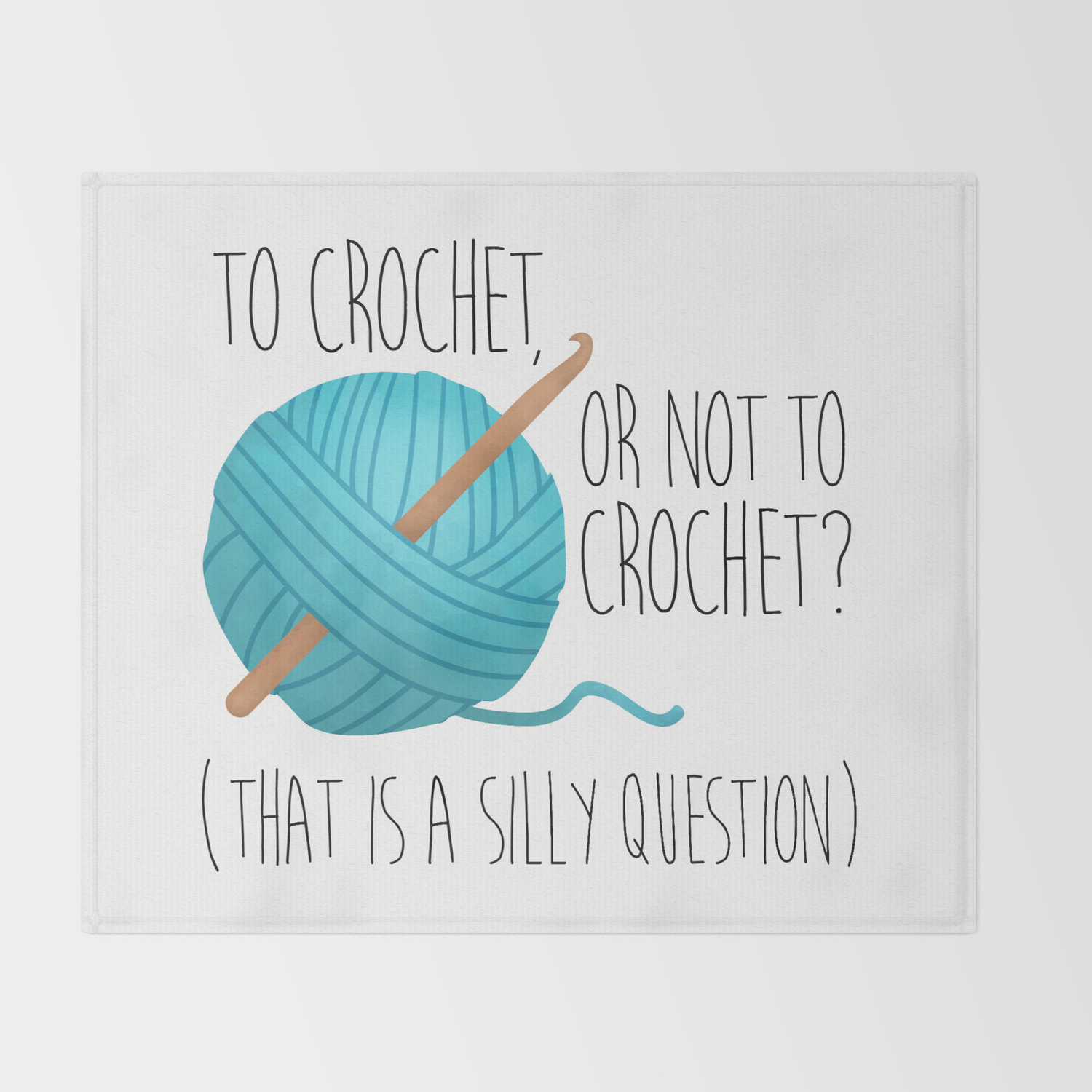 To Crochet Or Not To Crochet That Is A Silly Question Blue Throw Blanket By Avenger Society6